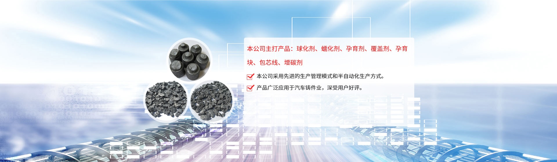 公司引進日本企業的生產管理模式,半自動化生產方式。目前生產能力:球化劑250T/月、孕育劑300T/月、鑄造相關品200T/月。為嚴格控制產品質量,公司采用國內的ICP-AES等離子體發(fā)射光譜儀對采購原
